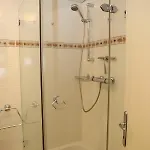 Te/kaffebryggare, sitthörna och TV samt vattenkokare, kylskåp och ugn finns också här. Lägenheten består av 2 sovrum och 2 badrum med duschkabin och separat toalett.